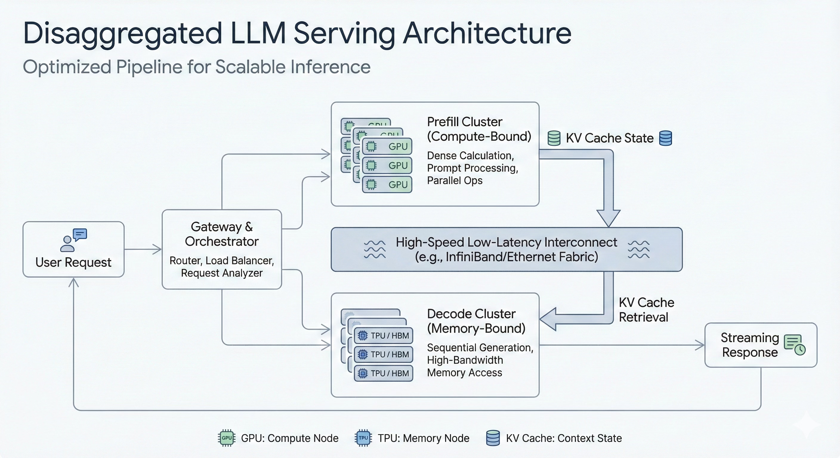 Decode runs on bandwidth-optimized, lower-cost TPU (or equivalent)