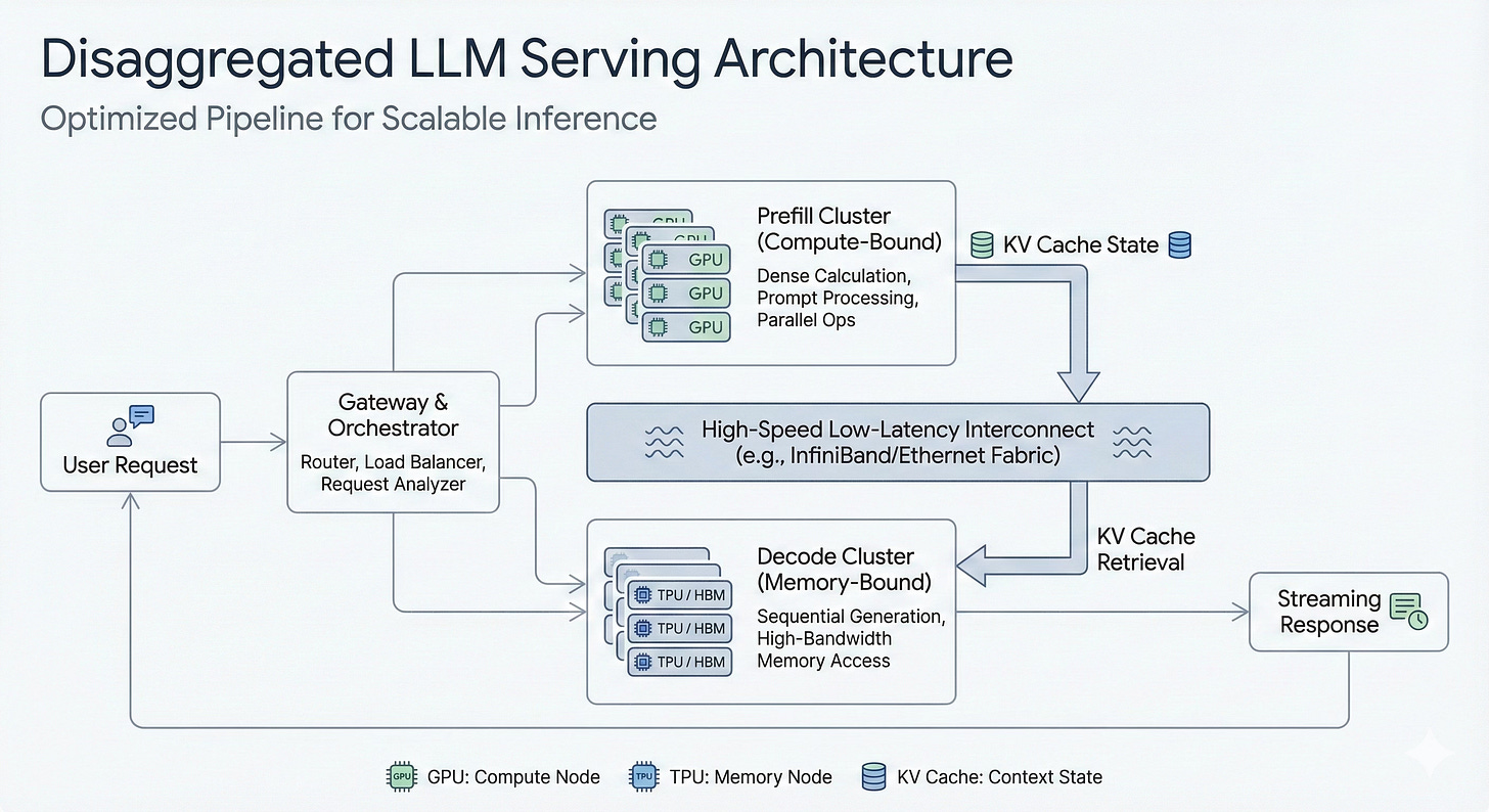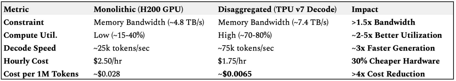 Disaggregated serving (using GPUs for what they’re good at and TPUs for what they’re good at) is the a leading architecture pattern to repeal that tax.